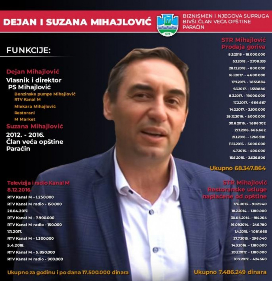 Iz budžeta opštine Paraćin prebačeno je za tri godine preko 70 miliona dinara u pumpe porodice Mihajlović.