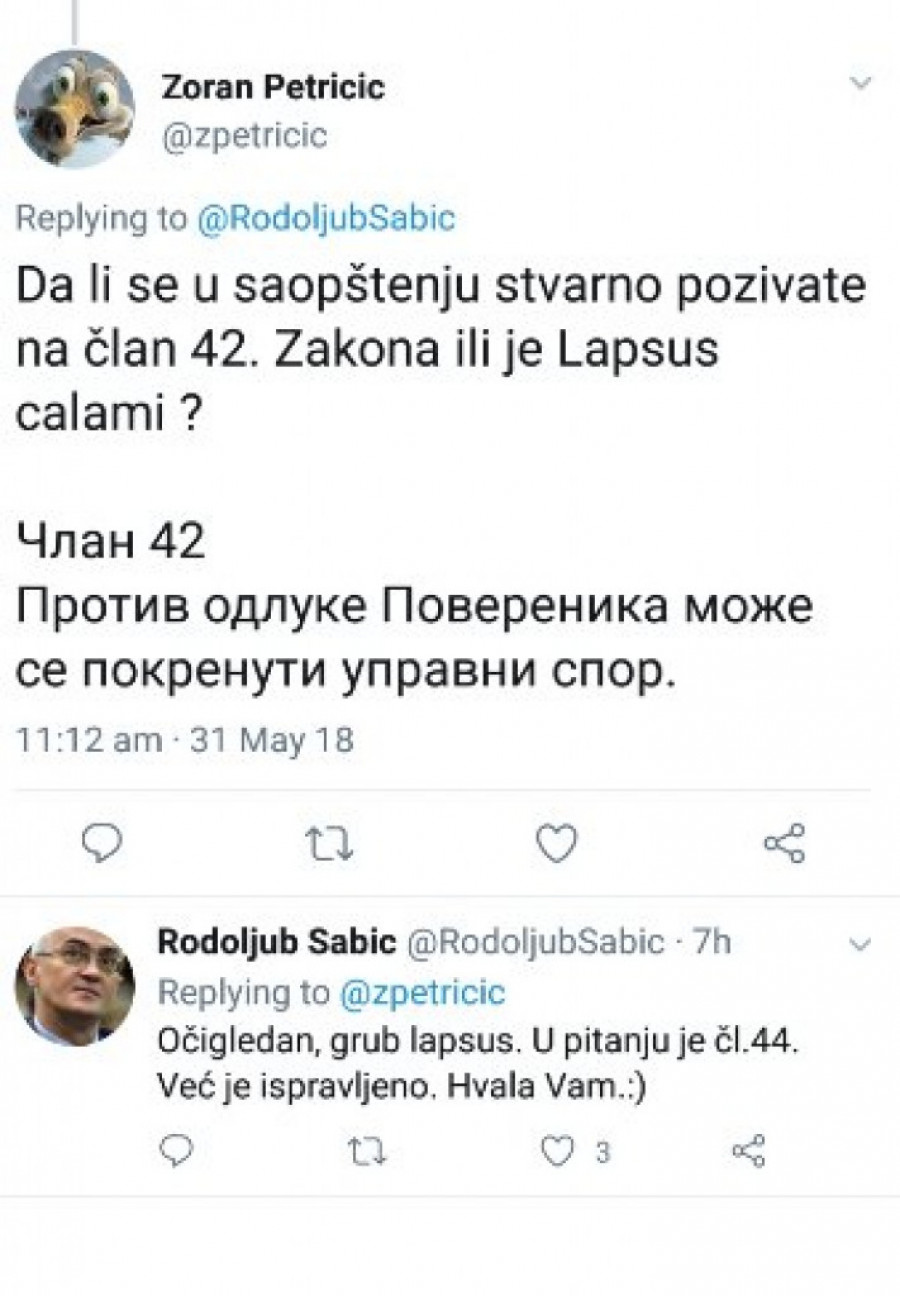Na ukazanu grešku, poverenik je reagovao kako dolikuje državnom službeniku i u skladu sa platom koju prima iz budžeta Republike Srbije - smajlijem.