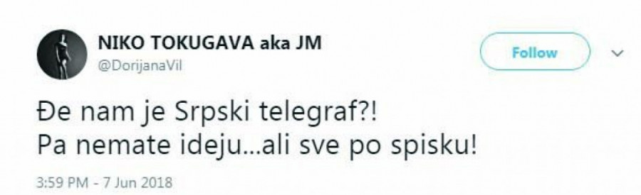 - Đe nam je Srpski telegraf?! Pa nemate ideju... ali sve po spisku!