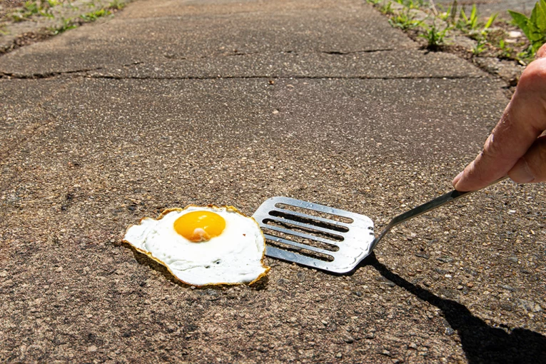 Na snimku se vidi kako je na asfaltu ispržio jaje u tiganju. I to veoma brzo.