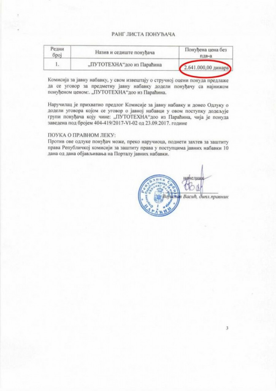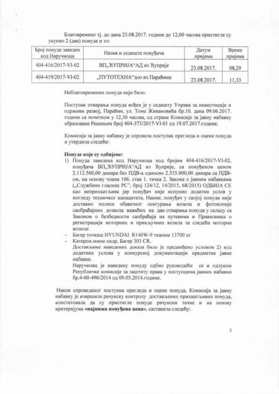 Zanimljiv je i podatak da je Direkcija za izgradnju opštine potpisala krajem novembra 2016. godine sa Putotehnom DOO ugovor o izgradnji seoskih puteva koji su trebalo da budu gotovi - takođe do 31. marta!