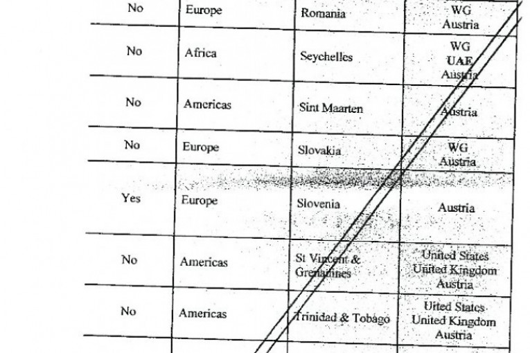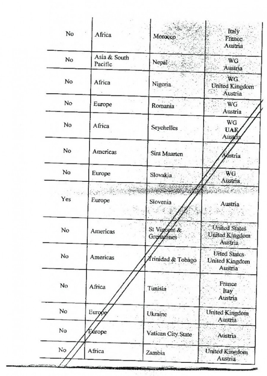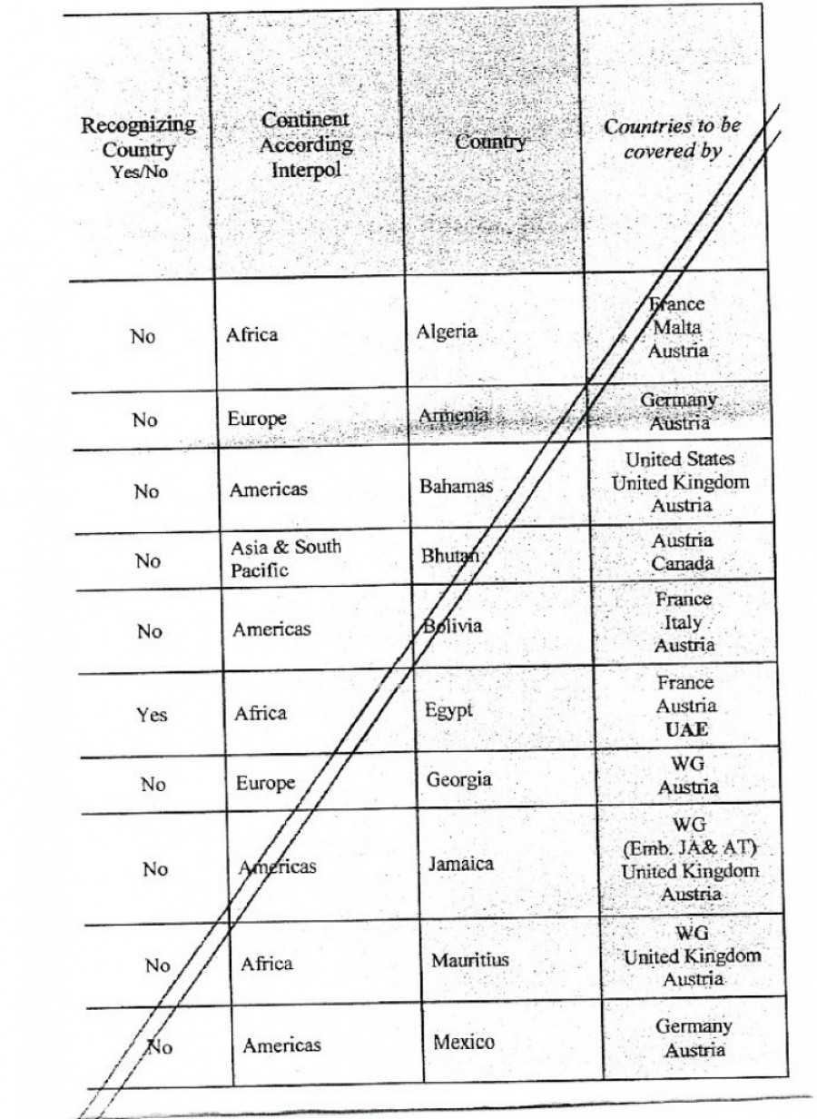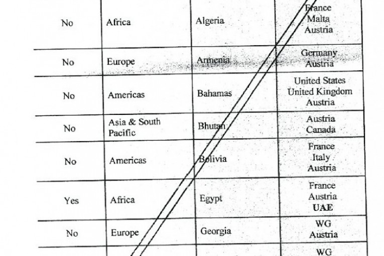 Tako u dokumentu stoji da će Francuska, Malta i Austrija vršiti pritiske na Alžir, Nemačka i Austrija zadužene su za Jermeniju, a SAD, Velika Britanija i Austrija za Bahame. Austrijanci treba da obrade i Sloveniju, Slovačku, Vatikan, Butan, Meksiko... Većinu država pritiskaće po nekoliko zemalja, tako da su za Jermeniju zaduženi i Nemci, i tako dalje...
