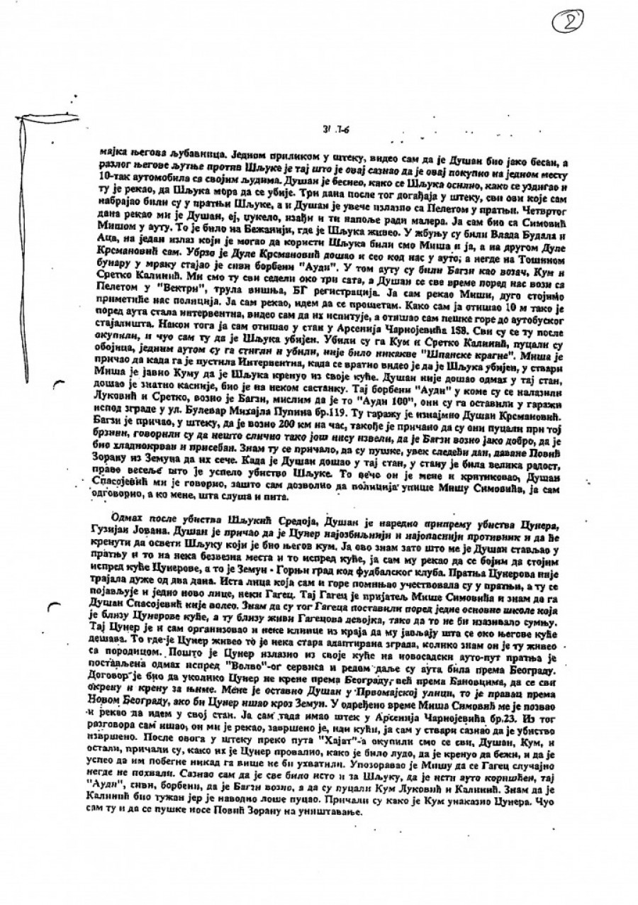 Nekoliko dana posle atentata, dok sam bio u Putincima sa Dušanom, Kumom i Bagzijem, tu smo saznali da je uhapšen Leo. Dušan je govorio da je verovatno uhapšen zbog toga što je bio ... na Vuka Draškovića u Budvi. Taj Leo je iz JSO i bio je u obezbeđenju Dušanovom.