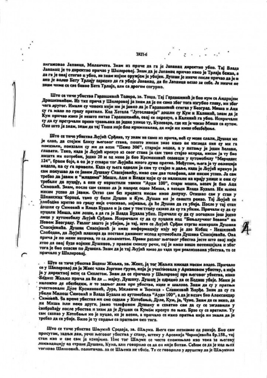 Na kraju mogu da kažem da je ova grupa Dušana Spasojevića bukvalno imala veze u svim ... države, u policiji, sudstvu, politici, čak i u Vojsci. Znam, i to me je uvek čudilo ... su oni srećni i veseli kada se vrate sa neke likvidacije.