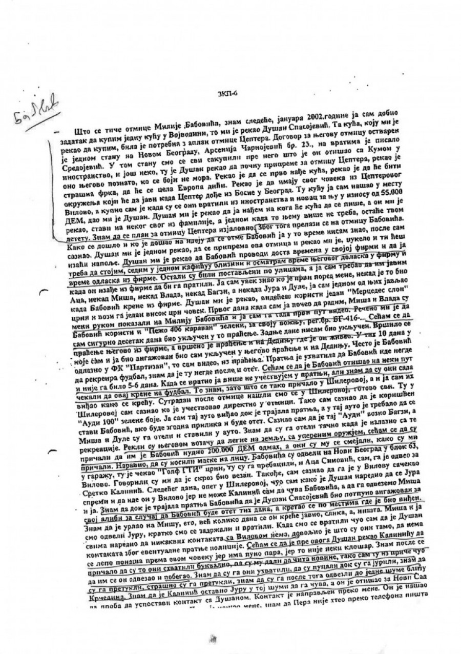 Učestvovao sam u praćenju Milije Babovića, ali poslednjih dana pred otmicu nisam. Iz priča u Šilerovoj saznao sam da su rekli Babovićevom vozaču da legne na zemlju držeći upereno oružje u njega. Babović im je nudio 200.000 maraka odmah, a oni su mu se smejali. Naravno da su nosili maske na licu.