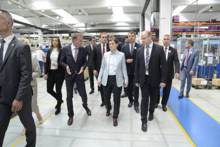 Premjerka je prvo posetila nemačku kompaniju Norma grupa, gde je obišla proizvodni pogon kompanije koja je od početka svog poslovanja u Srbiju investirala više od 32 miliona evra.