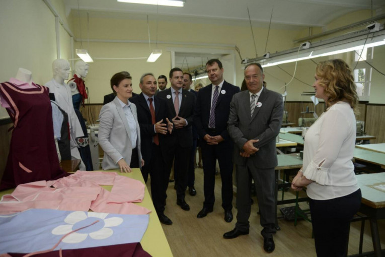 Ana Brnabić i članovi vlade posetili su i Hemijsko-tehnološku školu, poznatu po učeničkom preduzetništvu, a koja se trenutno renovira.