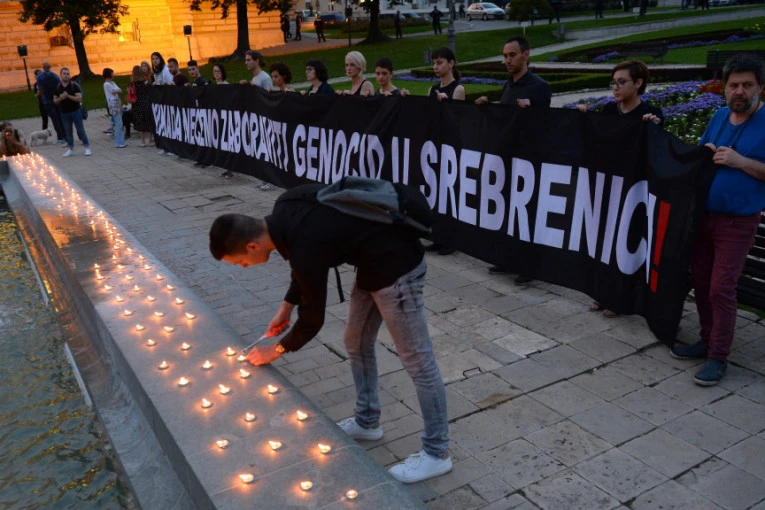 Foto: Tanjug/T. VALIČOko 30 predstavnika Inicijative mladih držali su transparent na kome je pisalo "Nikada nećemo zaboraviti genocid u Srebrenici", a u 20 sati su upalili sveće oko fontane u parku, u znak sećanja na žrtve.