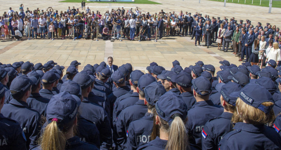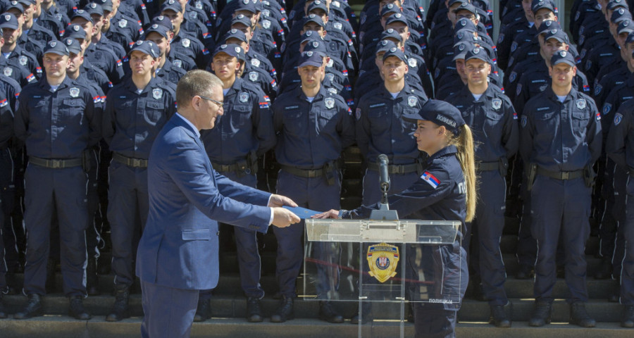- Nastavljamo praksu koja već dve, tri godine unazad uspešno teče, uz poštovanje principa usavršavanja, karijernog napredovanja i zapošljavanja ljudi koji završavaju policijske škole. Primamo najbolje koji su završili Kriminalističko-policijsku akademiju, Centar za osnovnu policijsku obuku i mlade vatrogasce - rekao je Stefanović.