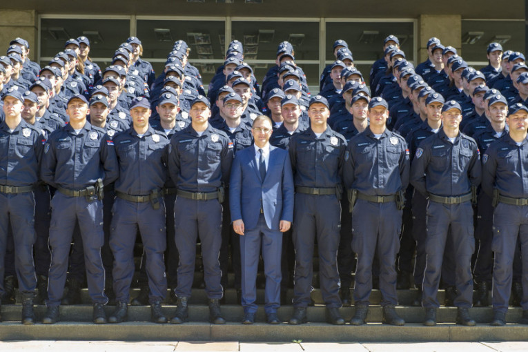 Ministar je novim policijskim službenicima poručio da su od danas u službi svih građana Srbije i izrazio uverenje da će oni doprineti većoj bezbednosti i da će svojim radom učiniti da budemo ponosni na njih.