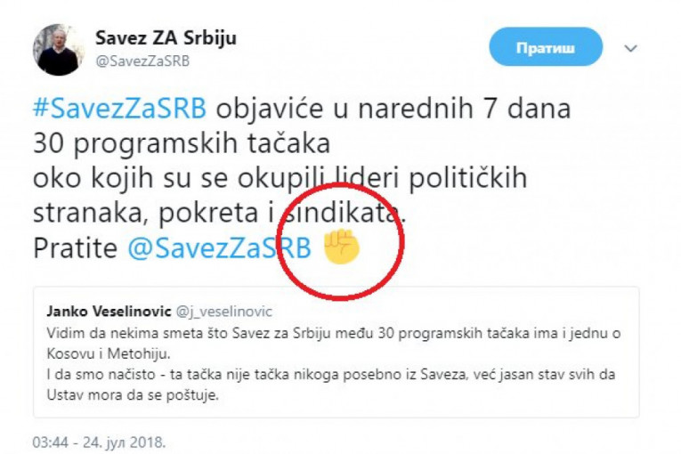 Nekadašnji lider Demokratske stranke najavio je na Tviteru da će dobro poznata otporaška pesnica ponovo rušiti aktuelni režim, isto kao 5. oktobra, bez obzira što je sada svima jasno da su Otpor finansirale američke tajne službe.