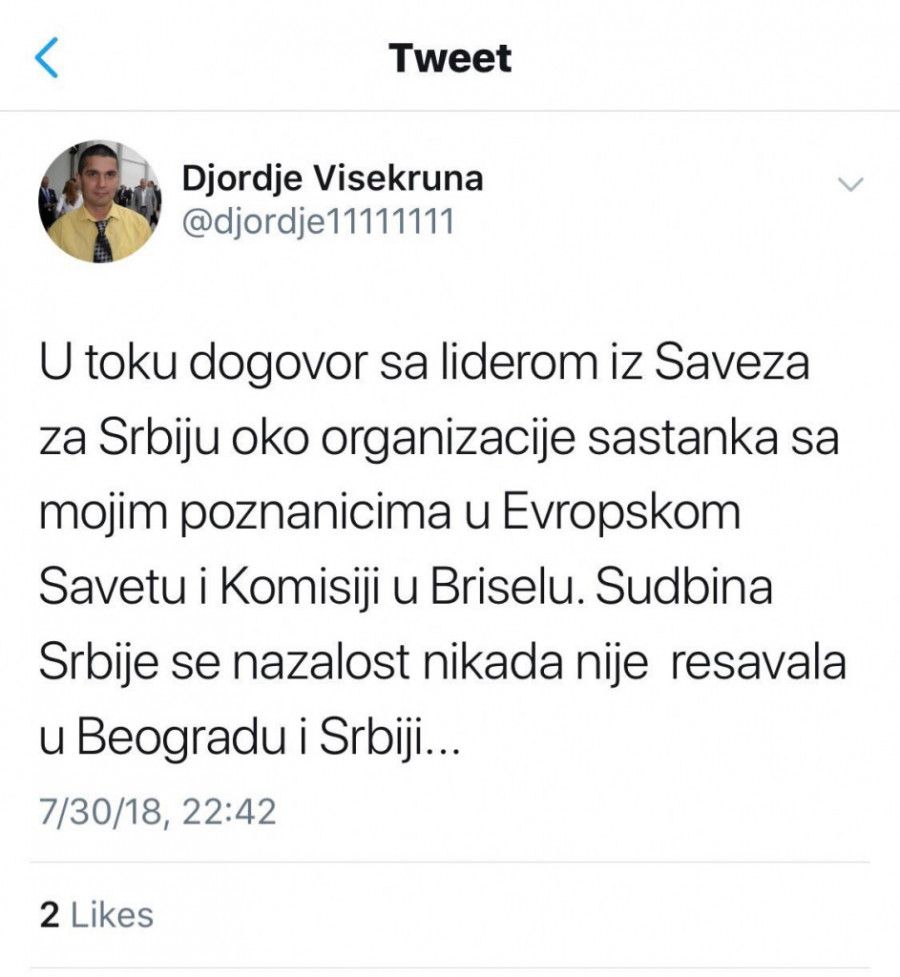 "Bošku Obradoviću i Draganu Đilasu organizujem sastanke u Evropskoj Komisiji i Savetu Evrope, radi rušenja Vučića!"