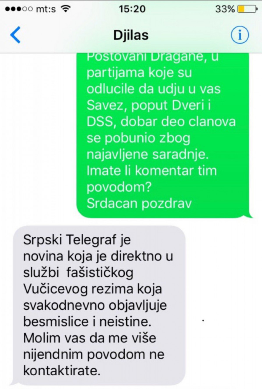 Djilas daje izjave samo za pojedine medije, a onda kritikuje slobodu medija i ostale medijske kuce sa kojima ne zeli da razgovara.