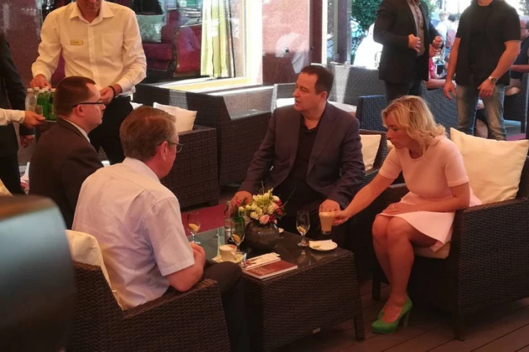 Šef srpske diplomatije Ivica Dačić ugostio je portparolku ruskog Ministarstva spoljnih poslova Mariju Zaharovu u beogradskom hotelu "Moskva", gde razgovaraju o njenim utiscima tokom posete Srbiji.