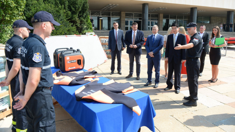 Vlada Japana donirala je Sektoru za vanredne situacije MUP-a Srbije spasilačku opremu, vrednu oko 1,5 miliona evra. Reč je o ukupno 24 čamca - 12 rafting i 12 spasilačkih, 12 prikolica za čamce, sedam plutajućih spasilačkih platformi, 29 led reflektora sa agregatima za noći rad, ronilačka odela, kompresore za vazduh.