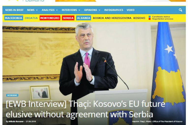 - Izgleda kao jednostavno i pragmatično rešenje. Vučić i Tači dogovaraju razmenu teritorija. Većinski Srbima naseljen sever Kosova pripao bi Srbiji, a većinski albanski naseljena Preševska dolina Kosovu. Zauzvrat Srbija treba indirektno da prizna Kosovo - navodi Standard.