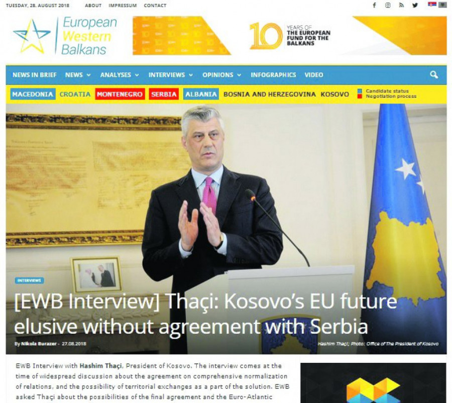 Juropijan vestern Balkans preneo je intervju sa Tačijem na tu temu, a britanski Gardijan je objavio tekst u kojem se pita da li bi podela ili razmena teritorija mogla da donese nove sukobe u region. Ovom pitanju značajnu pažnju posvećuju i Politiko, nekoliko nemačkih medija, portali i novine u regionu...