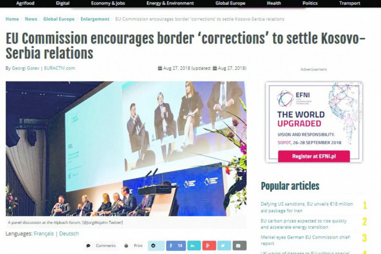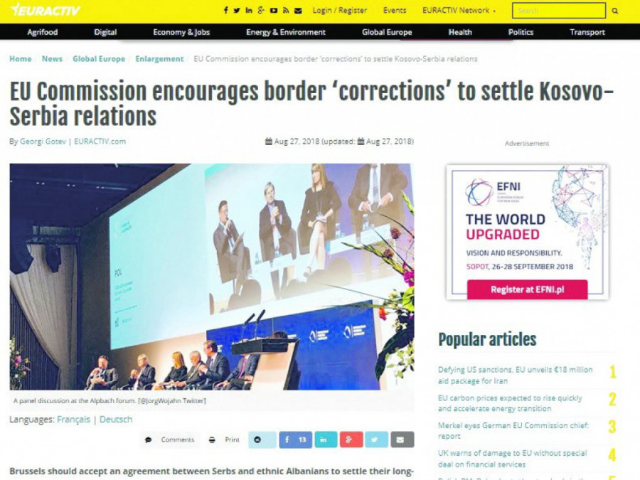 Analizu je objavio i briselski Evroaktiv, koji je preneo izjavu evropskog komesara Johanesa Hana da bi Brisel trebalo da prihvati dogovor Srba i Albanaca.