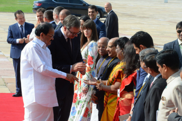 U delegaciji Srbije, koju predvodi predsednik Vučić, su potpredsednica Vlade i ministarka građevinarstva, saobraćaja i infrastrukture Zorana Mihajlović, ministar finansija Siniša Mali, ministar rudarstva i energetike Aleksandar Antić i guvernerka Jorgovanka Tabaković.