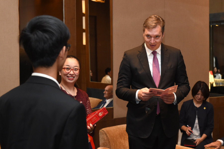 - Počastvovan sam što sam danas ovde. To predstavlja veliku nadu za naš narod. Rekli ste da inicijativa "Jedan pojas, jedan put" ne donosi samo plodove kineskom narodu već i svim učesnicima inicijative. Srbija ubire plodove na tom putu. Zato NR Kina i narod uzivaju ogromno poverenje u Srbiji. Zahvalni smo vam na svakoj vrsti podrske, na investicijama, ali sa druge strane Srbija predstavlja čeličnog saveznika i prijatelja Kini - rekao je Vučić obraćajući se kineskom predsedniku.