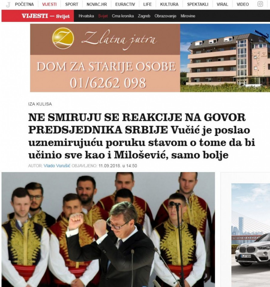 Za sada to rade objavljujući nebulozne tekstove i poredeći srpskog predsednika sa Slobodanom Miloševićem zbog govora na Kosovu, a svako ko je imao prilike da čuje i delić Vučićevog obraćanja nedavno u Kosovskoj Mitrovici, uvideo je da je govor predsednika Srbije okrenut ka boljoj i prihvatljivijoj budućnosti, a ne onako kako Hrvati žele da predstave, prenosi Alo.