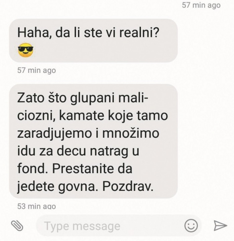 Kao i većina onih koji od naroda uzimaju novac vrlo lako se sa tim novcem i igraju zarad svojih ličnih interesa, a u javnosti se lažno predstavljaju kao veliki humanitarci.