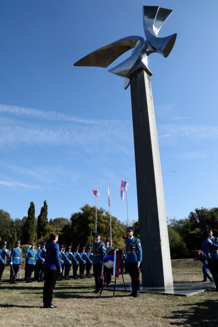 Foto: Tanjug/S. MILJEVIĆ- U periodu od 1941 do 1944. godine na ovom mestu zlokobnog i zastrašujućeg naziva strelište odredi fašističkog okupatora lišili su života gotovo 80.000 ljudi - kazala je Brnabić i dodala da je ovim žrtvama i drugim žrtvama dvadesetog veka zajedničko to da su branili svoje pravo na život i slobodu i da za tuđim nikada nisu posegli.