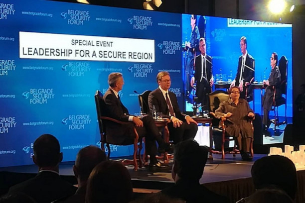 Foto: Tanjug/D. GOLLVučić je na panelu sa generalnim sekretarom NATO Jensom Stoltenbergom, upitan o jedinstvenom ekonomskom tržištu koje zagovara, rekao da nikada neće odustati od te ideje.
