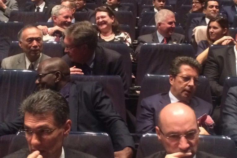 Foto: RepublikaKao što se može videti na fotografiji koju objavljujemo, ruski i kineski ambasador sede jedan pored drugog, dok je Kajl Skot jedan red iza njih.