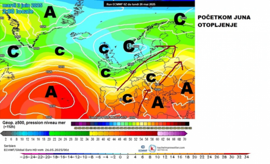 USKORO NAM STIŽE LETO! Približava nam se afrički topli vazduh, ovog datuma se sve menja, objavljena mapa Autor: Republika Vesti 26.05.2025 19:01 Pratite nas i putem Android ili iOS aplikacija Prema Ristićevoj vremenskoj prognozi, najkišovitiji dan do kraja meseca biće četvrtak 29. maj. Foto: shutterstock Roman Mikhailiuk shutterstock trendobjects shutterstock/Nenad Nedomack Schutterstock Halay Alex Schutterstock/Aliaksander Karankevich U Srbiji će u utorak biti promenjivo i oblačno sa sunčanim periodima, izolovane kiše može da bude samo na kratko u pojedinim delovima zemlje i očekuje se jači severozapadni vetar. Temperatura vazduha će biti 13-14 stepeni u jutarnjim časovima, a maksimalna dnevna oko 23-24 stepeni. Meteorolog Ivan Ristić kaže da će do kraja maja biti promenjivo vreme, ali nam se konačno približava topao afrički vazduh i već od 1. juna ćemo ući u pravo leto. Prema Ristićevoj vremenskoj prognozi, najkišovitiji dan do kraja meseca biće četvrtak 29. maj. Očekuje se i grmljavina uz manji pad temperature, a do kraja sedmice padavine će biti ređe i biće relativno toplo. Foto: Republika Ivan Ristić - U četvrtak bi trebalo da bude maksimalno do 10-15 mm kiše. Treba biti na oprezu zbog zapušenih odvoda i rizičnih mesta. Ne očekuju se nepogode, već pljuskovi sa grmljavinom. Ostalim danima su ponegde moguće kratke i izolovane padavine. Temperatura će krajem nedelje početi da raste i od sledeće nedelje, dok se Afrički ciklon postavlja polako na svoje mesto, imaćemo tropske temperature 30 i više stepeni – kaže Ristić, piše Blic. Printscreen/Facebook/Ivan Ristić/Marko Čubrilo Printscreen/Facebook/Ivan Ristić/Marko Čubrilo Printscreen/Facebook/Ivan Ristić/Marko Čubrilo Printscreen/Facebook/Ivan Ristić/Marko Čubrilo Od 1. juna tropske temperature Sa klimatološkim početkom leta, 1. juna, temperaturu na tropske vrednosti će podići Afrički anticiklon koji kreće, a da je na putu ka nama, Ristić kaže da govori što će već ove nedelje u Maroku biti preko 40 stepeni, čak 42-43 stepeni i što će taj toplotni talas krenuti prema severu Afrike, Španije i posle prema nama. - Od 2-3. juna počeće i sušna sezona u Grčkoj i ko ide na letovanje može da računa na lepo vreme. Problem je samo što je temperatura mora još uvek za oko 1-2 stepena niža nego prošle godine u ovo doba i trebaće malo vremena da se ugreje da bi kupačima bilo idealno u vodi. Sušni period u Grčkoj će trajati do septembra, dok je prošle sušni period počeo dve nedelje ranije, oko 15. maja. Morska voda je sada od 18 do 21 stepen, a krajem juna će biti od 24 do 27 stepeni – poručuje turistima iz Srbije. Ostaje toplo sa dosta kiše i pljuskova sa grmljavinom Istovremeno u Srbiji neće biti jačih zahlađenja, ali su tokom juna i dalje moguće nestabilnosti uz kišu i pljuskove sa grljavinom. Meteorolog napominje da su zbog količine padavina koje se očekuju u junu mogući novi potopi, urbane poplave. - Kod nas će biti prolaznih naoblačenja, pljuskova, grmljavine i nepogoda. Najsušniji period ovog leta će biti druga polovina jula i u avgustu. U Srbiji ne možemo da očekujemo da bude bez padavina, mada kada se toplotna kupola formira bude i više od mesec dana pretoplo i to je moguće – kaže Ristić. Od svežeg do tropski toplog vremena Marko Čubrilo, meteorolog amater, najavio je da će narednih dana biti relativno sveže, povremeno uz kišu ili pljusak, u četvrtak i petak vetrovito. Njegovi modeli isto daju početkom juna jače otopljenje i „posle 3. juna biće relativno toplo uz ređe nestabilnosti, dok je osveženje moguće oko 8. juna“. - Tokom cele nedelje biće promenljivo oblačno i nestabilno uz moguću kišu ili pljuskove, a u utorak nad planinskim delom na jugoistoku. Uglavnom se obilnije padavine ne očekuju. Duvaće umeren, severozapadni vetar. U sredu uglavnom suvo i malo toplije, dok se u noći ka četvrtku očekuje prolazno naoblačenje uz kišu, pljuskove i jak severozapadni vetar. U četvrtak posle podne nad istokom i jugoistokom regiona kiša i pljuskovi, a nad ostali delom uglavnom suvo i ponovo sveže uz maksimume od 12 do 18 stepeni Celzijusa – kaže Čubrilo. Za vikend suvo i početak rasta temperature Za vikend će biti pretežno sunčano i najverovatnije suvo uz postepen porast maksimalnih dnevnih temperatura koje će u nedelju biti od 20 do 28 stepeni. - Početkom naredne nedelje još malo toplije uz maksimume od 25 do 32 stepena Celzijusa uz moguće ređe nestabilnosti na severu regiona. Osveženje uz izraženije pljuskove i lokalne nepogode je moguće posle 8. juna – zaključuje Čubrilo. BONUS VIDEO Poštovani čitaoci, možete nas pratiti i na platformama: Facebook, Instagram, YouTube, TikTok, Telegram, Vajber. Pridružite nam se i prvi saznajte najnovije i najvažnije informacije. Naše aplikacije možete skinuti sa Google Play i Apple AppStore. Pročitajte i... Vremenska prognoza 14:57 26.05.2025 NAJNOVIJE UPOZORENJE RHMZ! Stiže nova tura kiše u Srbiju, EVO kako će biti do kraja dana! Politika 06:31 26.05.2025 NE DAJTE DA VAS SUNCE ZAVARA! Stigla je najnovija prognoza i evo šta nas danas čeka! Vremenska prognoza 16:10 25.05.2025 PAO SNEG U OVOM DELU SRBIJE, OVAKO NEŠTO SE NE PAMTI! Udarilo iznenadno zahlađenje, ljudi zanemeli! (FOTO) Vremenska prognoza 15:39 25.05.2025 TEMPERATURA ĆE BITI SVEGA DVA STEPENA! Meteorolozi najavljuju nastavak kiša i zahlađenje - A EVO KADA STIŽE LEPO VREME Tagovi Vremenska prognoza Ivan Ristić Meteorolog Ivan Ristić Leto Kiša Toplo Komentari (0) Vesti Politika 21:38 "NEMAJU DOVOLJNO SNAGE DA UGROZE SRBIJU" - Predsednik Vučić poslao jaku poruku naciji: "NAŠA DECA NE GINU, NEČIJA GINU, A NEČIJA SE ZA TO SPREMAJU" (VIDEO) Politika 21:04 "GLAS SRBIJE SE ČUJE I UVAŽAVA" - ministar Starović održao više važnih sastanaka u Vašingtonu (FOTO) Politika 21:00 KAD NE MOGU NIKAKO DA GA POBEDE NA IZBORIMA...! Pet zamki za Vučića, ne zna se KOJA JE VEĆA LA
