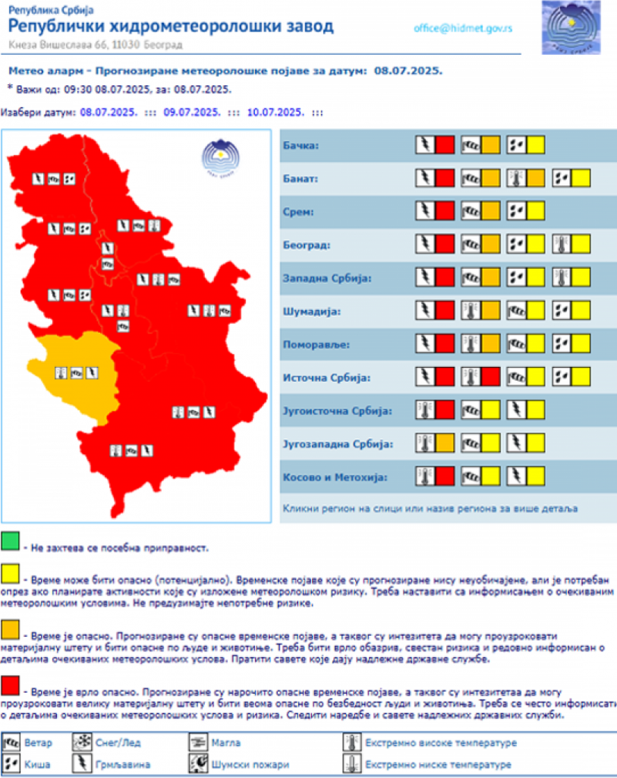 Vremenska prognoza 12:43 08.07.2025 VREME JE VRLO OPASNO! Upaljen crveni alarm: U Srbiju stiže superćelijska oluja, očekuje se apokalipsa (FOTO)
