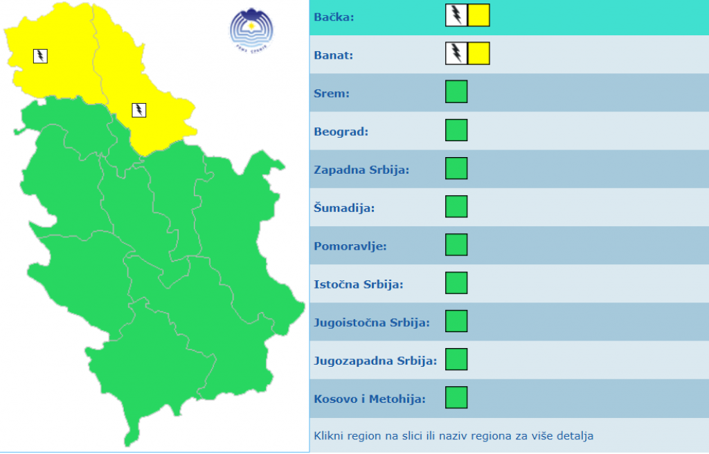 PLJUSKOVI I GRMLJAVINA DANAS U OVIM KRAJEVIMA! RHMZ izdao upozorenje, upaljen i metealarm! (FOTO) Autor: Republika/J.B. Vesti 11.07.2025 06:09 Pratite nas i putem Android ili iOS aplikacija Jutro hladno, popodne toplije! Foto: TANJUG/ MARKO DjOKOVIC/ bs, Shutterstock/Dan Martin Maghiar Vreme U Srbiji će danas biti promenljivo oblačno uz pojavu sunčanih intervala, naročito u prvom delu dana u Vojvodini, ali i sa retkom pojavom kratkotrajne kiše ili pljuska uz mogućnost grmljavine, saopštio je danas Republički hidrometeorološki zavod. Duvaće slab i umeren, na istoku povremeno i jak severozapadni vetar i temperaturama od 11 do 27 stepeni. U Beogradu će biti uglavnom suvo sa dužim sunčanim intervalima, a u pojedinim delovima grada je posle podne moguća kratkotrajna kiša ili pljusak, dok će najviša dnevna temperatura biti oko 25 stepeni. Upaljen meteoalarm Na teritoriji Vojvodine, tačnije u Bačkoj i Banatu na snazi je žuti meteoalarm zbog grmljavine sa ili bez padavina. - Rizik od udara groma, opasnost za život ljudi i životinja, problemi u radu svih uređaja koji koriste električnu energiju, rizik od iniciranja pojave vatre, problemi u telekomunikacijama. Mogući problemi u transportu električne energije zbog udara groma. Moguća je lokalna pojava intezivnih pljuskova, bujica i jakih udara vetra sa štetama na pokretnoj i nepokretnoj imovini - piše na sajtu RHMZ uz obrazloženje da se očekuje potencijalno opasno vreme. Foto: RHMZ/printscreen Na snazi žuti meteoalarm Od subote se očekuje porast temperatura, koje će sostizati i preko 30 stepeni. Upozorenje RHMZ Na celom toku Dunava i Save kao i na Tisi kod Titela vodostaji će se narednih dana kretati ispod niskih plovidbenih nivoa. Na Kolubari sa pritokama, na Jadru, kao i na gornjim tokovima Zapadne i Južne Morave sa pritokama proticaji su se približili minimalnim srednje mesečnim vrednostima 95%-ne obezbeđenosti (biološkom minimumu). BONUS VIDEO Poštovani čitaoci, možete nas pratiti i na platformama: Facebook, Instagram, YouTube, TikTok, Telegram, Vajber. Pridružite nam se i prvi saznajte najnovije i najvažnije informacije. Naše aplikacije možete skinuti sa Google Play i Apple AppStore. Pročitajte i... Vremenska prognoza 07:50 27.06.2025 MRAČI SE NEBO NAD SRBIJOM! Počeo da pada grad u ovom delu zemlje, vetar olujne jačine gura nevreme ka BEOGRADU Vremenska prognoza 06:10 08.07.2025 DVA HLADNA FRONTA UDARAJU SRBIJU! Pik vremenskih nepogoda biće DANAS u ovom delu zemlje, očekuju se GRAD i OLUJNI VETAR Vremenska prognoza 06:19 24.06.2025 ZAHLAĐENJE STIŽE PREKO NOĆI! Doneće kišu, pljuskove i grmljavinu, naredni dani u Srbiji biće obeleženi VREMENSKIM OSCILACIJAMA Vremenska prognoza 06:10 16.06.2025 MRAČI SE NEBO NAD SRBIJOM! Posle sunčanog dana NOĆ DONOSI ZAHLAĐENJE, ovim delovima zemlje prete KIŠE I PLJUSKOVI Tagovi vreme danas Vremenska prognoza Vojvodina Vreme u Beogradu vremenska prognoza Beograd Vreme u Srbiji Prognoza vremena Kiša Pljuskovi Grmljavina RHMZ Žuti meteoalarm Prethodna vest Sledeća vest Komentari (0) Vesti Srbija 09:30 SPREMITE ČELIČNE ŽIVCE! Danas se svuda očekuju gužve, kolone i zastoji - OVE deonice su najkritičnije! Društvo 09:15 OGROMAN SKOK ZARAŽENIH GRIPOM! Hitno se oglasio "Batut" - na udaru deca i bebe! Politika 08:54 BRISEL SVE RADI POGREŠNO! Nemački mediji saglasni: Bez Srbije nema stabilnosti na Balkanu! 08:54 VAŽNO ZA SVE KOJI DANAS IDU NA SLAVU! Kako se čestita Sveti Nikola i šta gost treba da uradi čim uđe u kuću domaćina! Politika 08:09 "DA NAM VELIKI SVETAC I GOSPOD BOG ČUVA SRBIJU!" Vučić slavi krsnu slavu, objavio fotografiju iz crkve! (FOTO) Društvo 08:00 Mileva Marić: Život između genija, tišine i izbora Politika 07:40 PRITISCI NA SRBIJU DOLAZE DO TAČKE PUCANJA! Tramp potpisao zakon u kojem se izbacivanje ruskog gasa i nafte sa Zapadnog Balkana proglašava za AMERIČKI NACIONALNI INTERES! (FOTO) 07:30 GDE JE KOREN SVAKOG ZLA U SVETU: Vladika Nikolaj otkriva kako sačuvati čistotu duše u pomračenom vremenu Društvo 07:16 DECI DANAS DARUJEMO ORAHE, JABUKE I SLATKIŠE! Ove običaje na Svetog Nikolu morate ispoštovati - na slavu nikako ne dolazite PRAZNIH RUKU, a posebno verovanje vezano je za dužnike! 07:01 DANAS JE SVETI NIKOLA: Evo kako pravilno obeležiti ovaj veliki praznik Društvo 07:00 MISTERIJA ATLAS NA SVETOG NIKOLU: Veza komete i Visokih Dečana za koju nauka nema objašnjenje - ČITAJTE U SRPSKOM TELEGRAFU Srbija 06:37 POTPUNI KOLAPS NA SRPSKIM GRANICAMA! Čeka se i do 15 sati, a gužva se tek očekuje popodne! Srbija 06:30 VOZAČI, OPREZ! Na kolovozima je poledica, vidljivost smanjuje i MAGLA! Beograd 06:22 STRAVIČNA SAOBRAĆAJKA U RAKOVICI! Muškarac (50) teško povređen, hitno prebačen u Urgentni centar! Vremenska prognoza 06:05 TOKOM DANA SUNCE, A ONDA OBLACI I GUSTA MAGLA! Neobično topao Nikoljdan u Srbiji, od OVOG dana totalna promena! 06:01 VERSKI KALENDAR ZA PETAK 19. DECEMBAR Društvo 01:30 BRUTALNE KAZNE OD NOVE GODINE! Telefoniranje i pojas koštaće vas KAO POLA PLATE! Ukida se popust za 8 dana, spremite se za najstroži zakon ikada! 01:01 ŽITIJE SVETOG NIKOLE: Kako je skromni arhiepiskop iz Likije postao najvoljeniji čudotvorac pravoslavlja 00:06 ŠTA NAM NAJPRE DONOSI BLAGODAT, A ŠTA JE NAJPRE ODGONI OD NAS: Sveti Teofan otkriva kako često sami sebe sabotiramo Društvo 00:01 DNEVNI HOROSKOP ZA 19. DECEMBAR: Rakovi započinju novo poglavlje, Vodolije dominiraju inovacijama, a Ribe se bore s partnerovim nepoverenjem 23:04 18.12.2025 IZNENADNI ODLAZAK JEDNOG OD POSLEDNJIH VELIKIH UMETNIKA: Čuvao je kosovski zavet i slikao ono što reči nisu mogle da iskažu Politika 23:00 18.12.2025 ORBAN I FICO SRPSKA BRAĆA! Lideri Mađarske i Slovačke digli glas u Briselu Društvo 22:16 18.12.2025 NIJE OBIČAN GRIP, OVO JE NOVI SOJ KOJI MUČI DECU! Kašalj traje nedeljama, a temperatura lomi! Virus se proširio brzinom svetlosti, niko nije bezbedan! OGLASIO SE I BATUT! 21:49 18.12.2025 11 BRITANACA