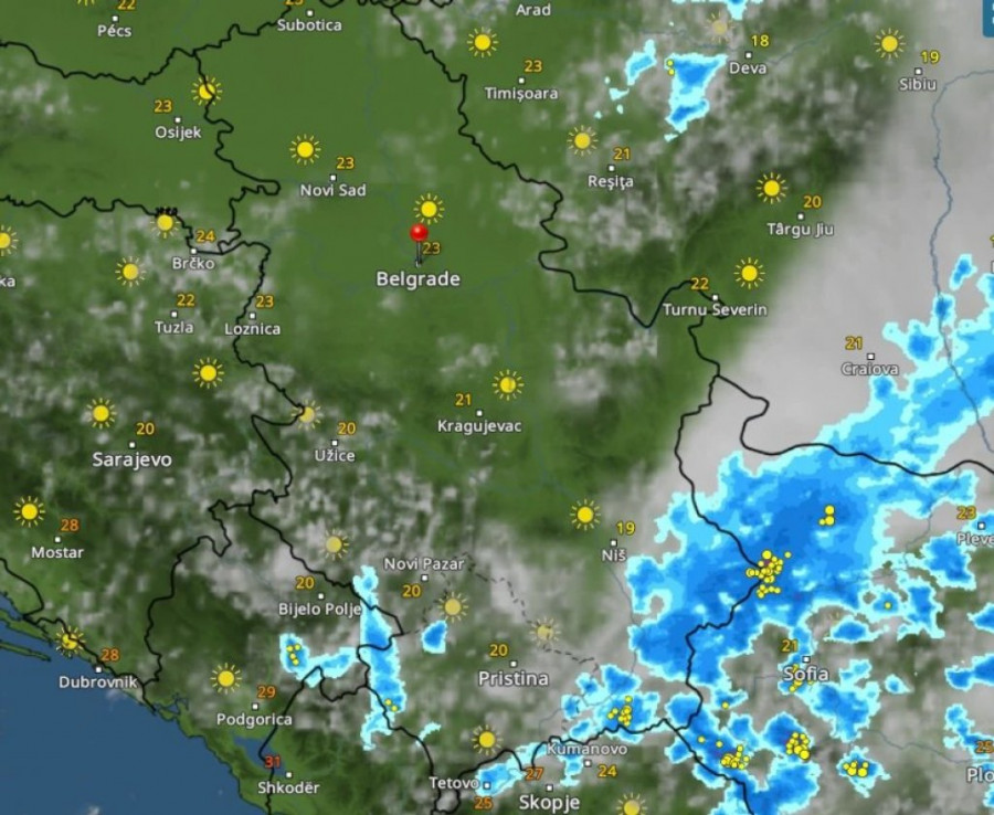 Vremenska prognoza 07:50 27.06.2025 MRAČI SE NEBO NAD SRBIJOM! Počeo da pada grad u ovom delu zemlje, vetar olujne jačine gura nevreme ka BEOGRADU