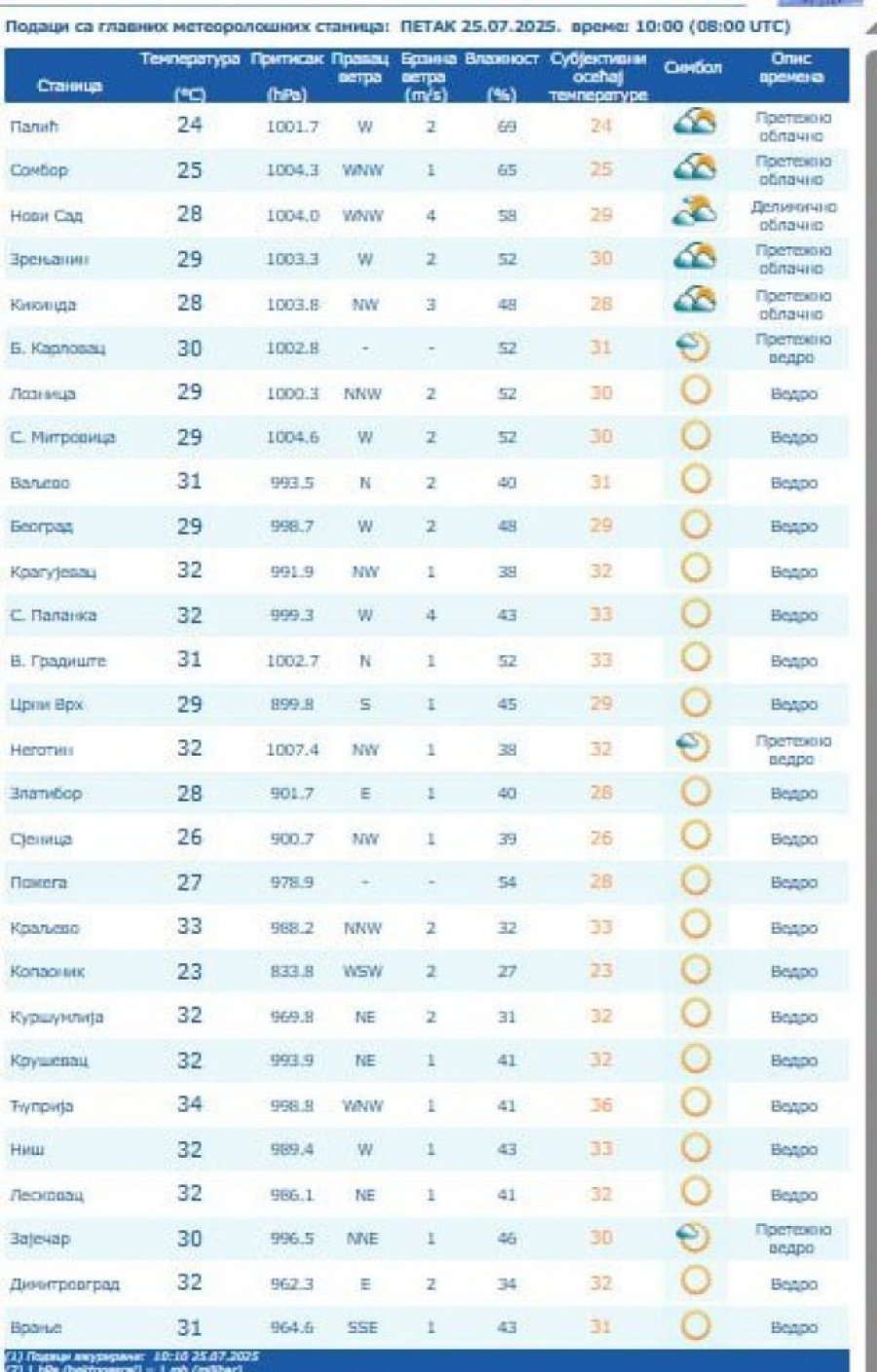 Vremenska prognoza 08:15 25.07.2025 DANAS JE NAJTOPLIJI DAN OD POČETKA GODINE! Popaljeni alarmi na teritoriji CELE SRBIJE, ekstremne vrućine haraju, aktiviran sistem SMS poruka