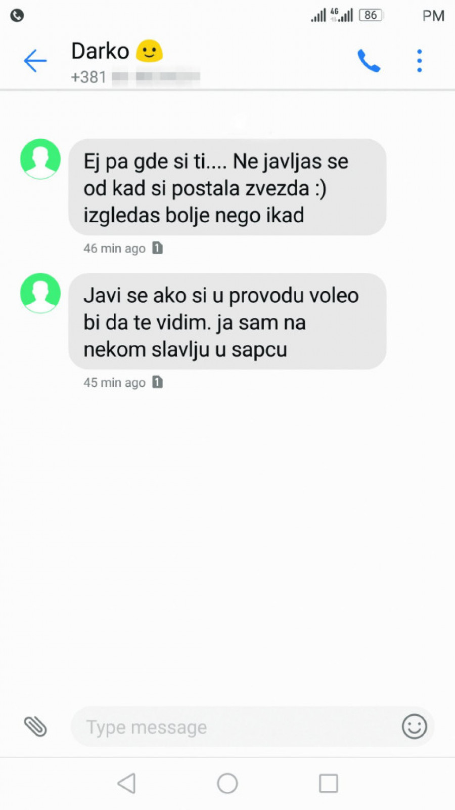 - Ej, pa gde si ti? Ne javljaš se otkad si postala zvezda. Izgledaš bolje nego ikad - napisao je u prvoj poruci pevač Kiji, a potom je usledio još jedan SMS.