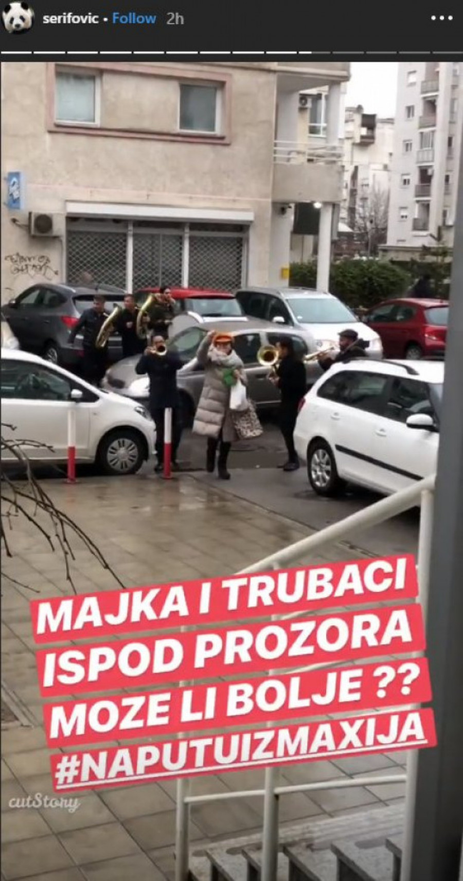 Foto: instagram.com/serifovicNaime njena majka Verica se pojavila ispred zgrade sve sa trubačima, a Marija je video okačila i na društvenu mrežu instagram uz koji je napisala da joj se isto desilo i prošle godine.
