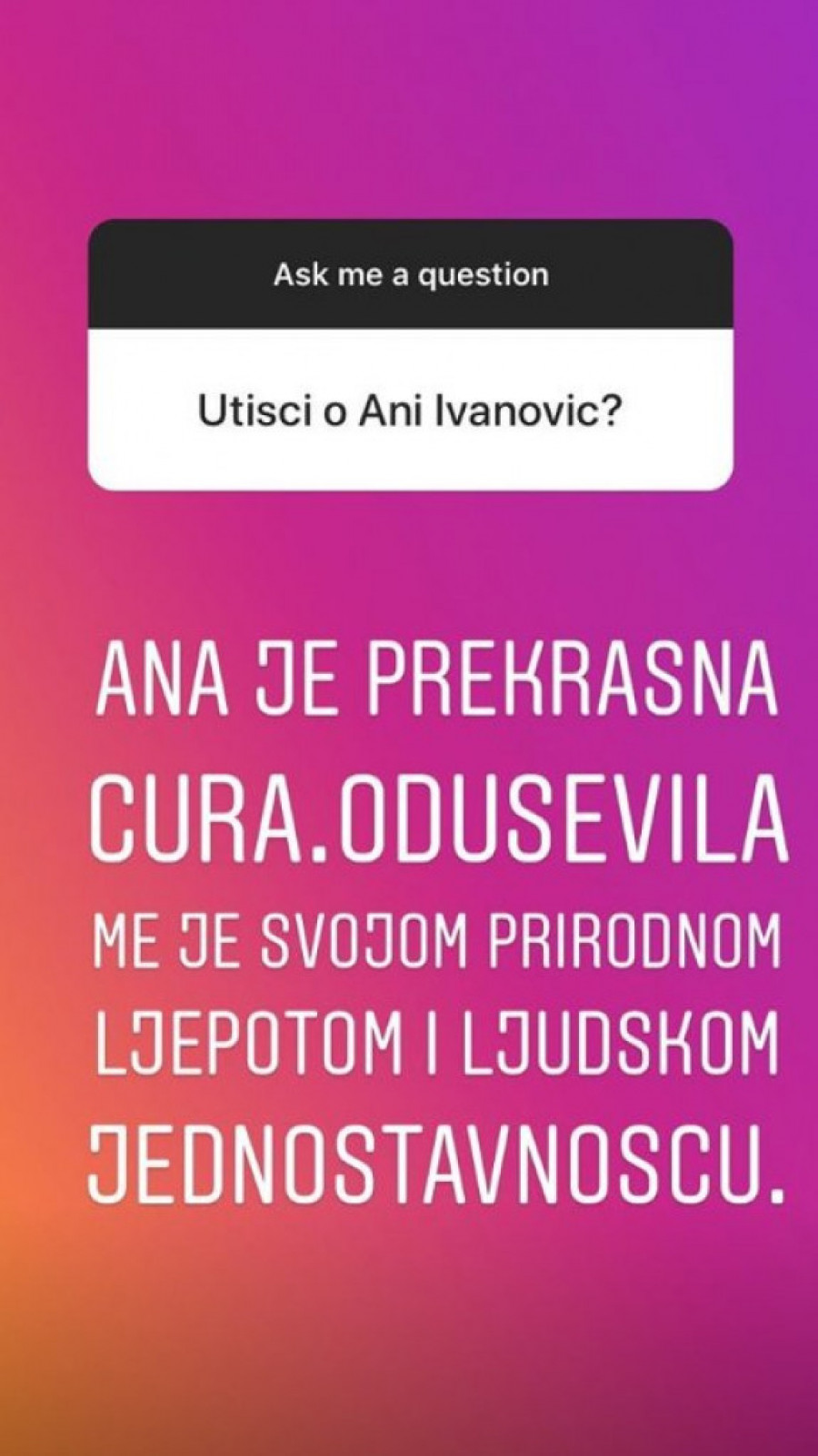 - Ana je predivna devojka. Oduševila me je svojom prirodnom lepotom i ljudskom jednostavnošću - poručila je Nina.