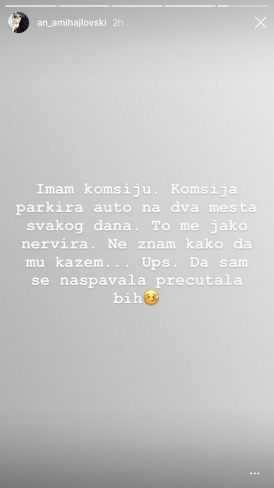Foto: instagram.com/anamihajlovski_officialAna je, naime, umesto da komšiju pozove i kaže mu šta je muči, objavila šta je imala na svom profilu na instagramu.