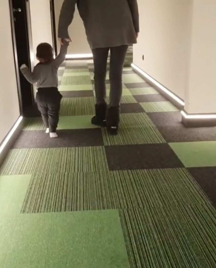 Naime, Katja prve korake pravi u hodniku hotela, gde je držeći se mami za ruku, šetala bosa.