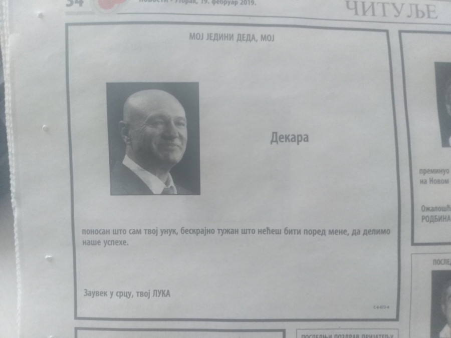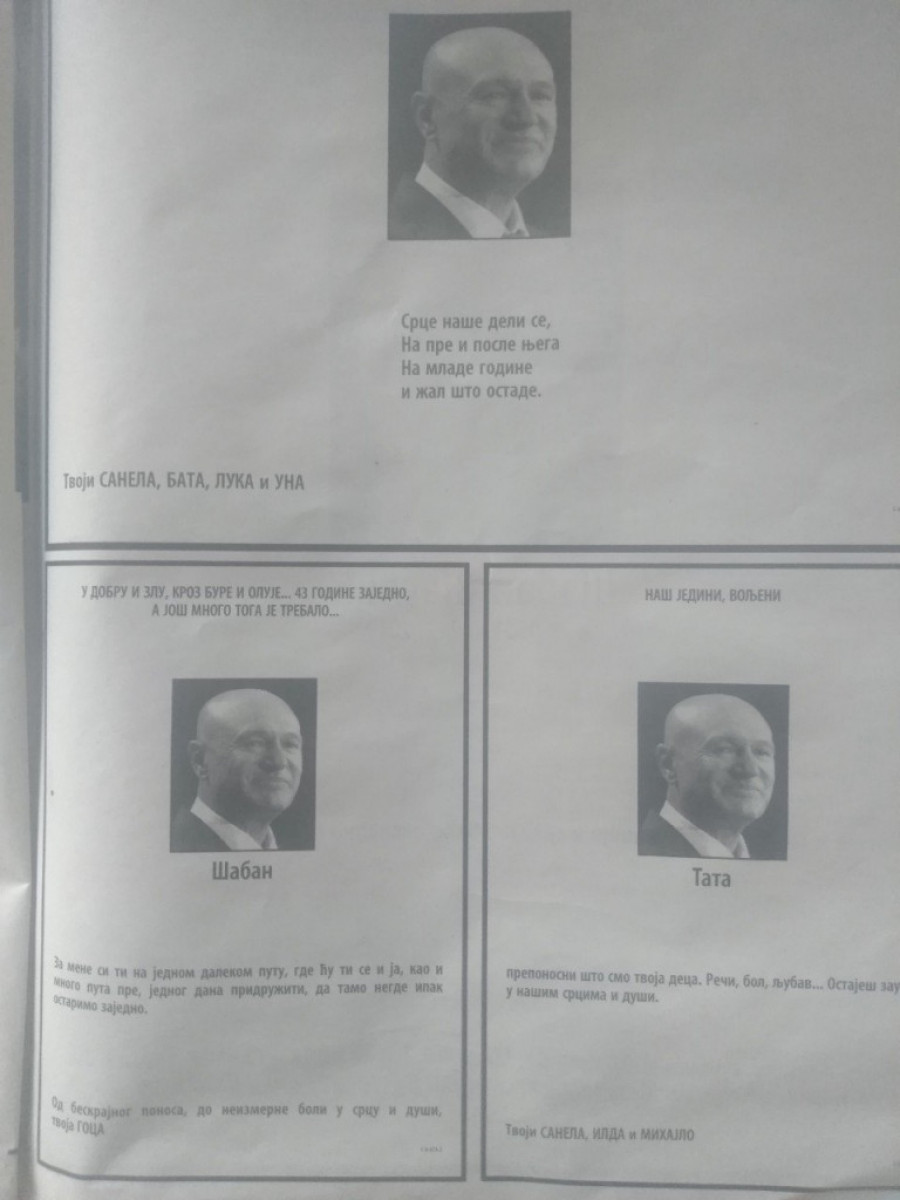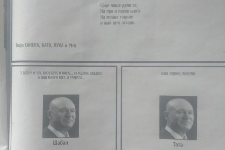 Najupečatljivija čitulja, ujedno i najpotresnija jeste ona koju je dala porodica zajedno.