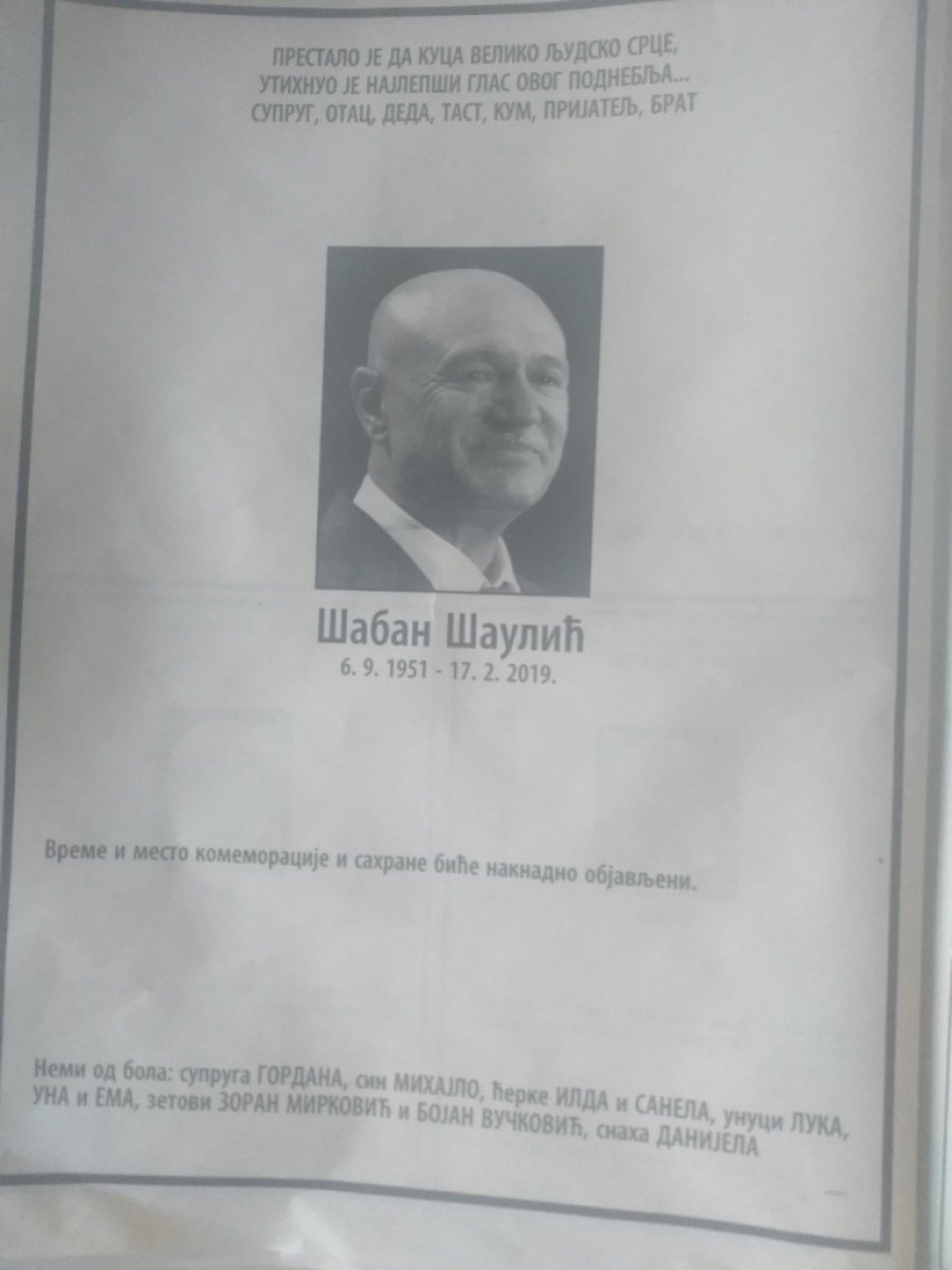 Najtužnija čitulja: Porodica se ovako oprostila od Šabana Šaulića!