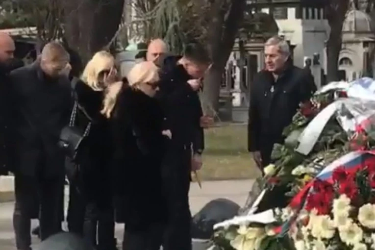 Goca Šaulić je sve vreme plakala, dok ju je sin tešio, a Ilda je čučnula pored očevog groba sa maramicom u ruci, takođe u suzama i uhvatila se za srce, pišu beogradski mediji.