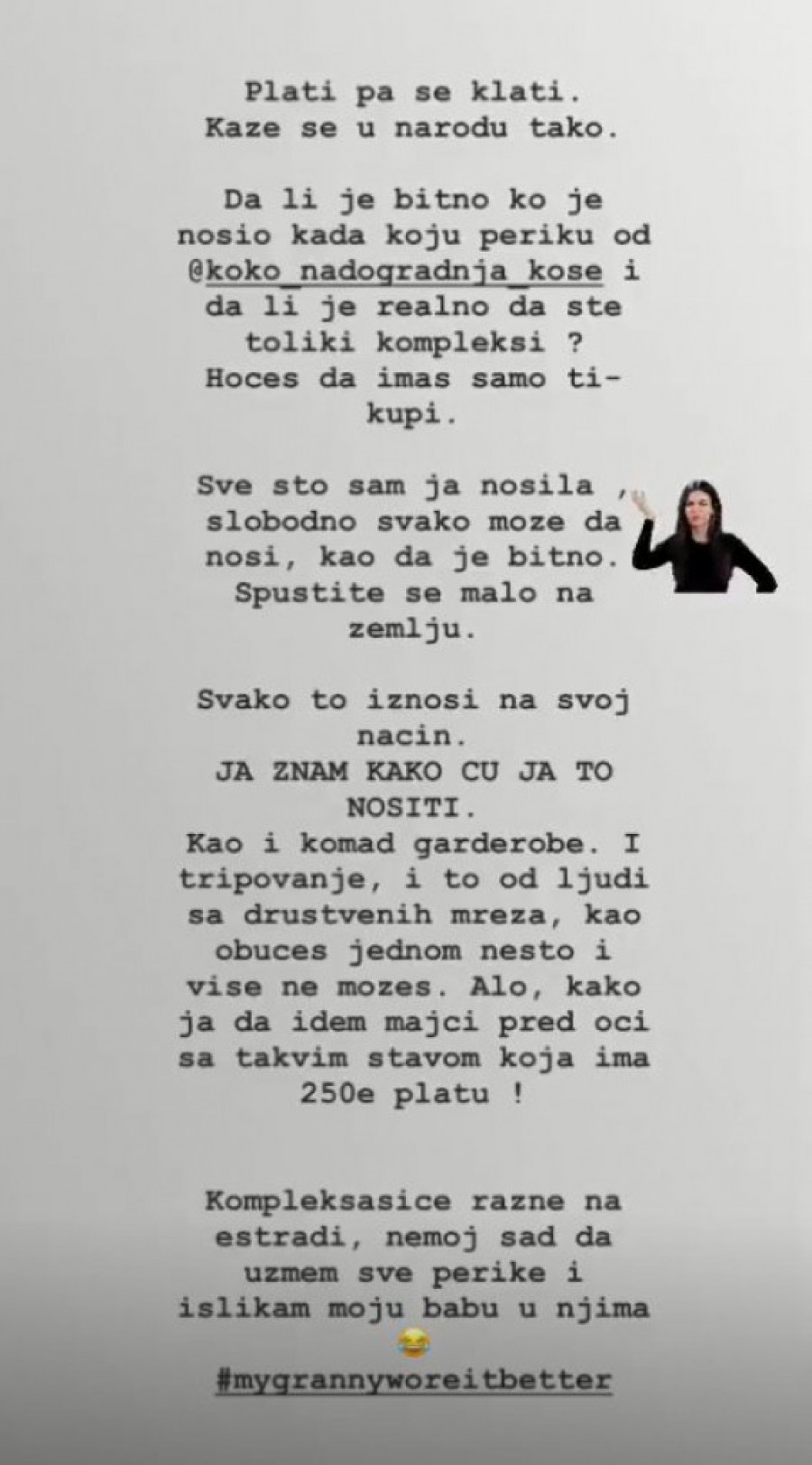 - Bila ova perika nekad dobar fazon... dok nije prestala da bude - potpisala je Edita objavu.
