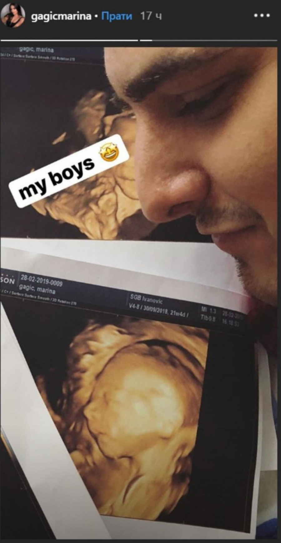 Ponosni roditleji pohvalili su se fotografijama sa ultrazvuka, a Marina koja je u šestom mesecu trudnoće na jednoj od slika na kojoj je i Darko napisala je: