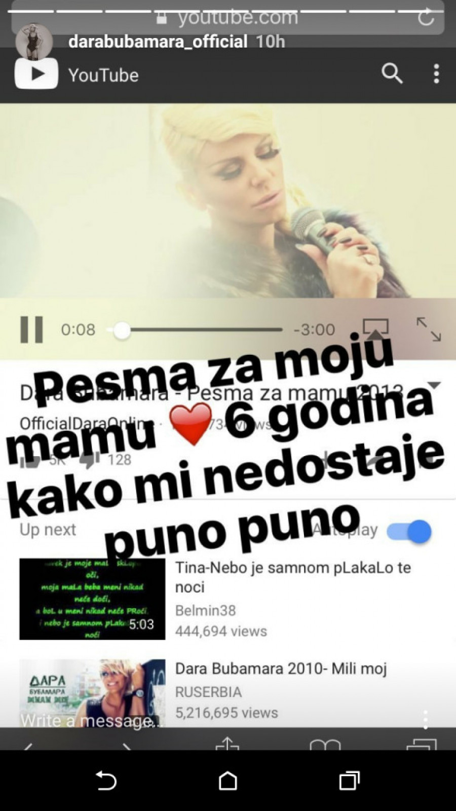 Foto: instagram.com/darabubamara_official- Pesma za moju mamu. 6 godina. Kako mi puno nedostaje! - napisala je pevačica.