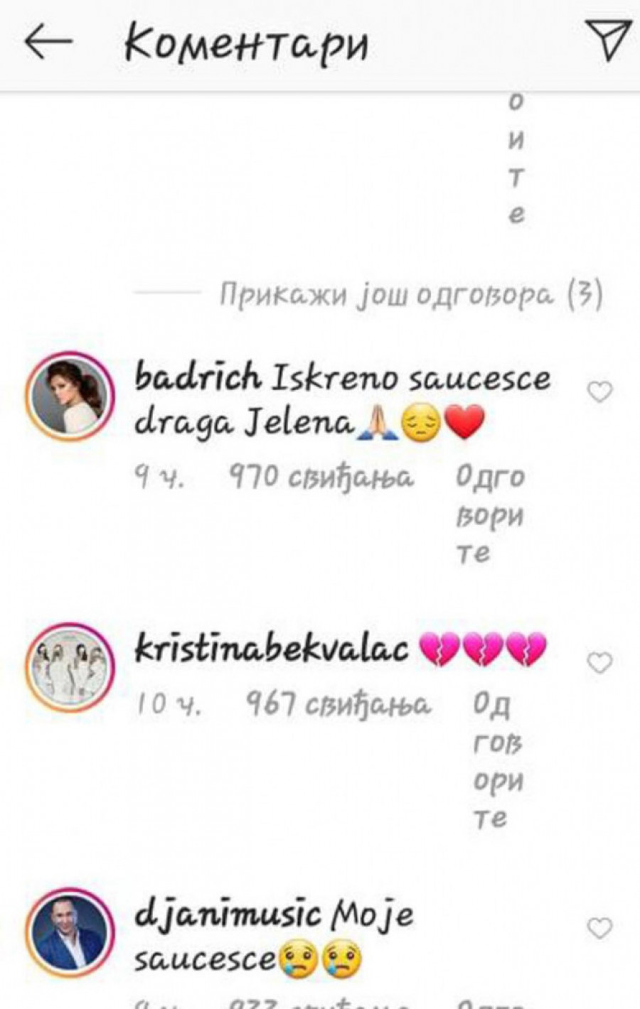 Foto: instagram.com/divnakarleusaIspod Jelenine objave povodom smrti, komemoracije i sahrane, kolege su se redom oglašavale pa srceparajućim porukama dali ruku podrške u ovom najtežem momentu.