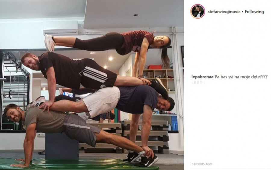 Stefan Živojinović redovan je posetilac teretane, a koliko vredno trenira pokazao je upravo danas kada je dokazao da na svojim rukama i nogama može da izdrži težinu čak dva muškarca i jedne devojke.