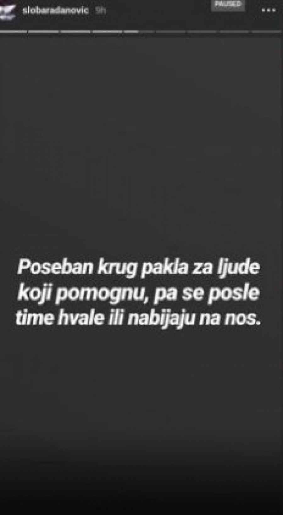- Poseban krug pakla za ljude koji pomognu, pa se posle time hvale ili nabijaju na nos - napisao je Sloba na svom Instagramu.