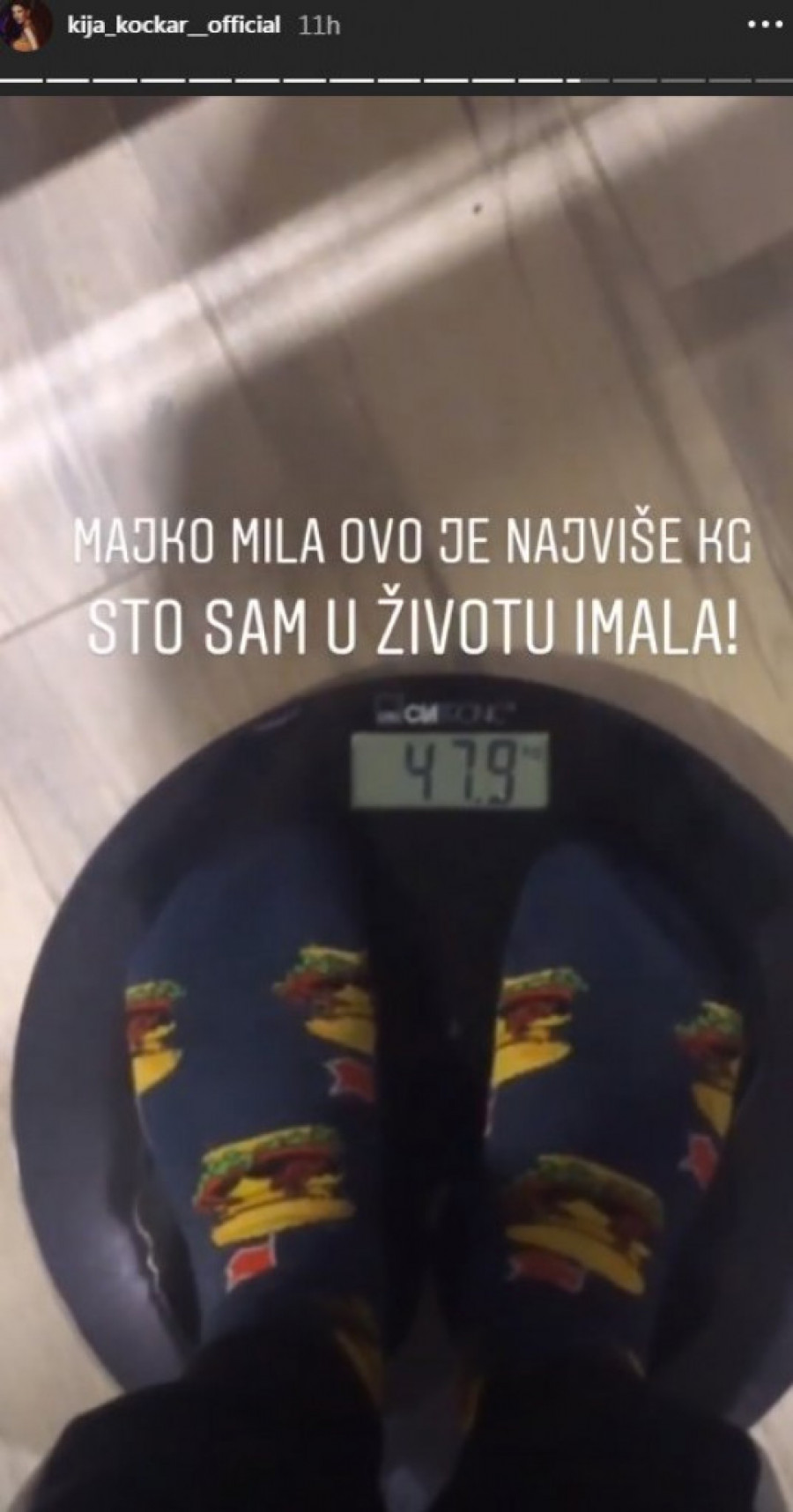 - Majko mila ovo je najviše kilograma što sam u životu imala - napisala je Kija u svojoj Instagram priči.