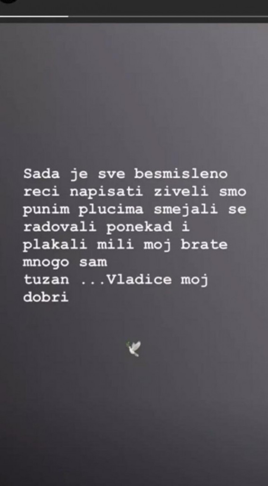 Foto: instagram.com/vidicsasa- Sada je sve besmisleno reći, napisati. Živeli smo punim plućima, smejali se, radovali, ponekad i plakali. Mili moj brate, mnogo sam tužan... Vladice moj dobri - napisao je Saša.